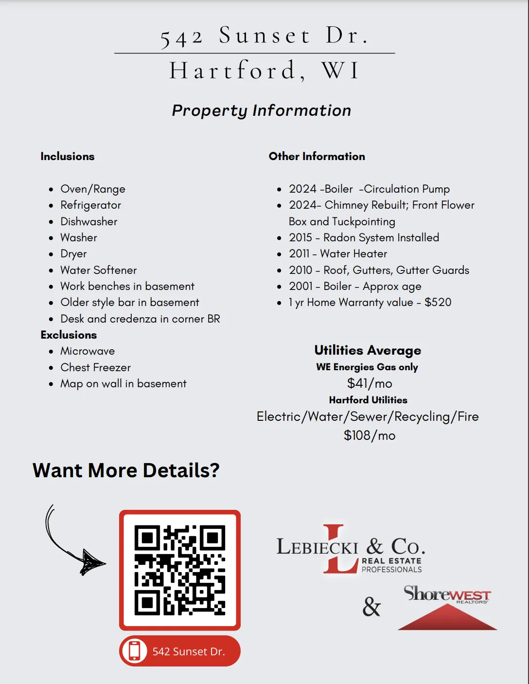 Set on a spacious 1/3-acre lot in an established subdivision, this 3-bedroom brick ranch offers the perfect combination of comfort and convenience. Located within walking distance to Hartford High and Central Middle Schools, makes it a fantastic spot! Step inside to a large, light-filled living room featuring newer luxury vinyl plank flooring. The spacious eat-in kitchen boasts stainless steel appliances, oak cabinets, and a breakfast bar—perfect for cooking and gathering. The beautifully remodeled full bathroom showcases Carrera marble countertops, a ceramic tile floor, and a tiled tub surround for a touch of luxury. All three bedrooms feature gleaming hardwood floors, adding warmth and character. Downstairs, the huge basement offers a partially finished rec room and additional space ready for your finishing touches. This home is a true gem in a sought-after location—don’t miss your chance to make it yours!